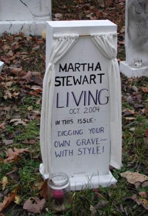 Baseball fans will appreciate this tombstone, and recognize the passed out figure behind it as a NY Yankees fan.