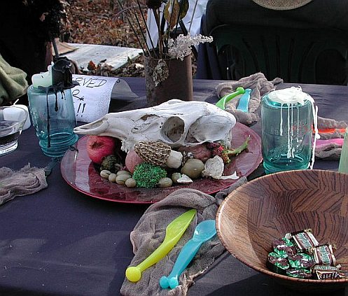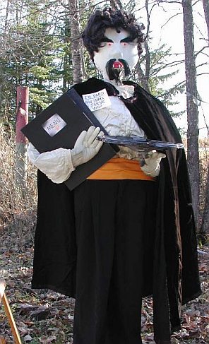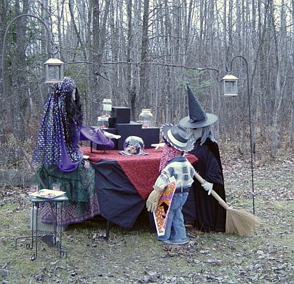 To make a long story short, in the spring of 2000 my family and our neighbors adopted a little patch of earth at the intersection of two tiny dirt roads as a meeting place. We named it the Crossroads, and we have had many interesting and hilarious times there-but that story is for another time. Though the two roads are very quiet, I decided our Crossroads was the perfect spot to create a halloween scene for the neighborhood to enjoy, and I've done one every year since. They range from rather simple to very elaborate, and as the figures are life size, they are quite a departure from the tiny things I make every day. I hope you enjoy seeing them, and check back for news of this year's scene!