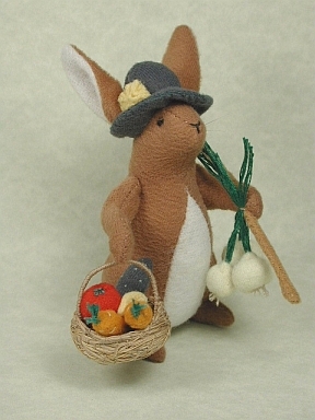 An essential tool for any gardener-and a nice place for a rabbit to take a nap as well! This is the tiniest bunny I've made-under 3/4" tall. The watering can is about 1 1/4" high, and is hand embroidered.