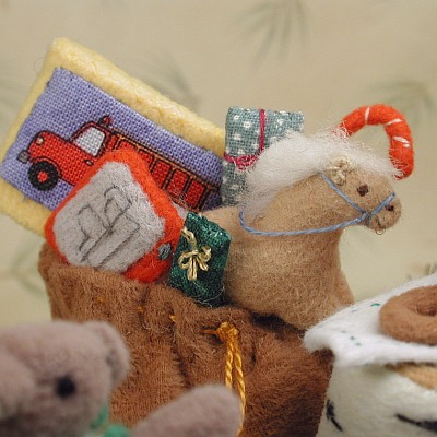 Baby loons really do ride on their mothers' backs, though I have taken some liberties with the coloring of this one! The baby is firmly stitched to the adult's back.