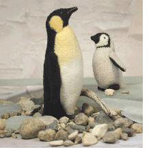 When the basic design is completed I move on to producing the animals for sale. My tools are very simple. I sew on an electric machine that was made by Singer in the 1950's; it does nothing but go forward and backward, and is perfect for my purposes. Scissors, needles, pins, and a fine instrument for turning pieces right side out after they are sewn are the basic tools of my trade. I use mostly synthetic materials, as they allow me to work with a very small seam allowance and will not unravel or rip apart as easily as natural fibers.